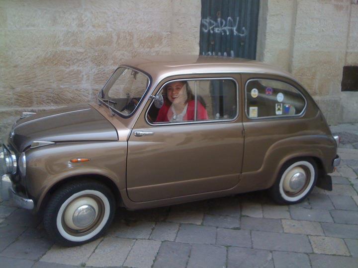 Riding Around Lecce Puglia in a Fiat 600 Someone had a great day in Puglia today – me! I rode around the stunning Baroque city of Lecce in a 1956 Fiat 600. This beautiful bronze bi-color has 97,000 kilometers on it and easily navigates some of the city’s smaller streets.