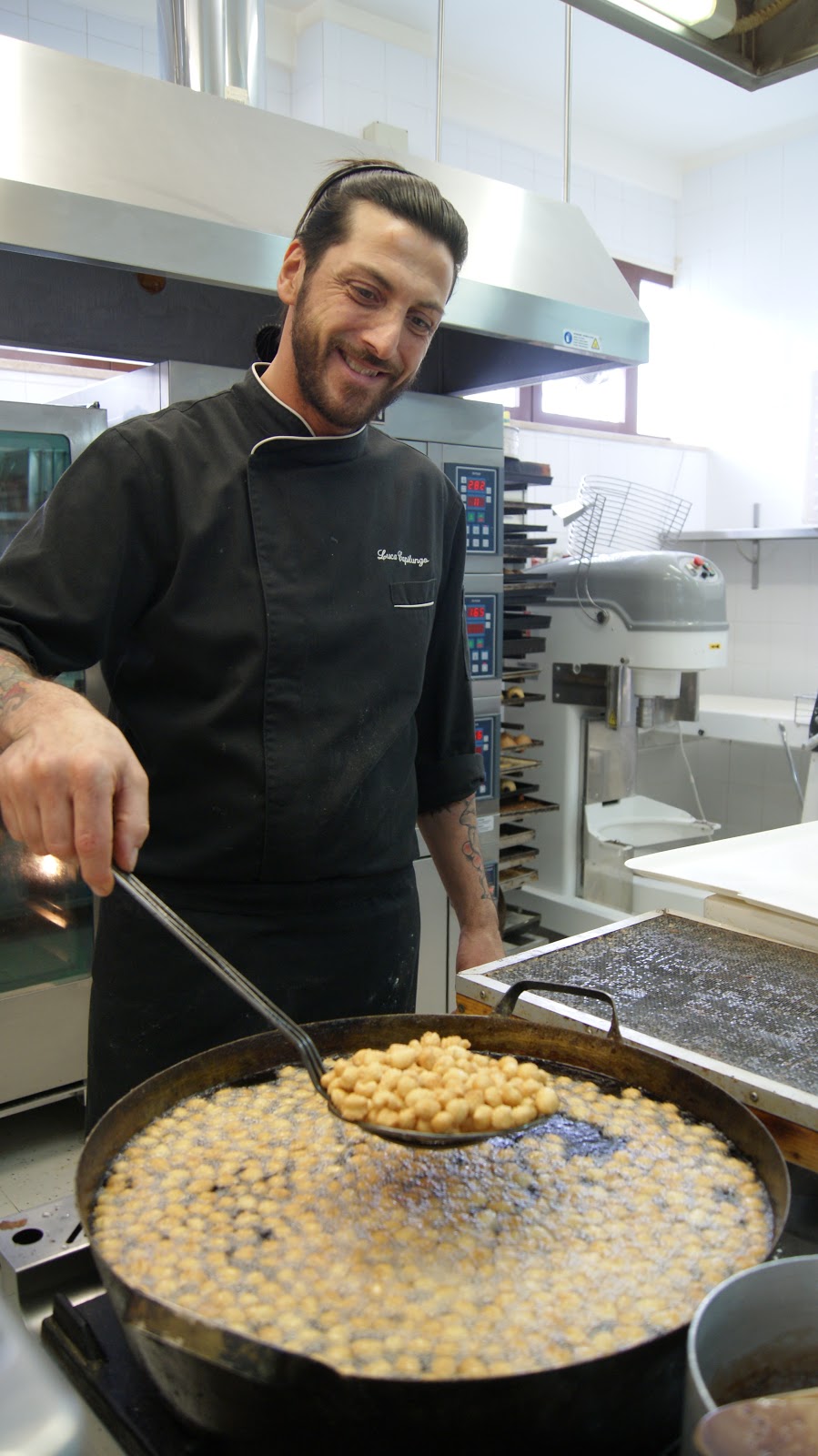 Today we will make purceddhruzzi with the famous Lecce pastry chef Luca Capilungo in his pastry shop in Lecce.