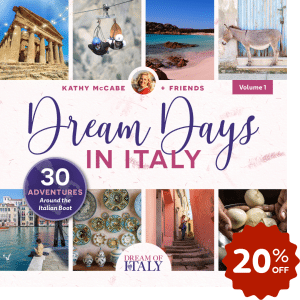 And keep an eye out for a few emails from me in the coming weeks, I will be offering a one-time opportunity to work one-on-one with me to create a plan to make your Italian dream come true whether it is through travel, moving to Italy or honing in on your Italian passion. It will be a BLACK FRIDAY offer to Unlock Your Dream of Italy Plan! — Kathy McCabe